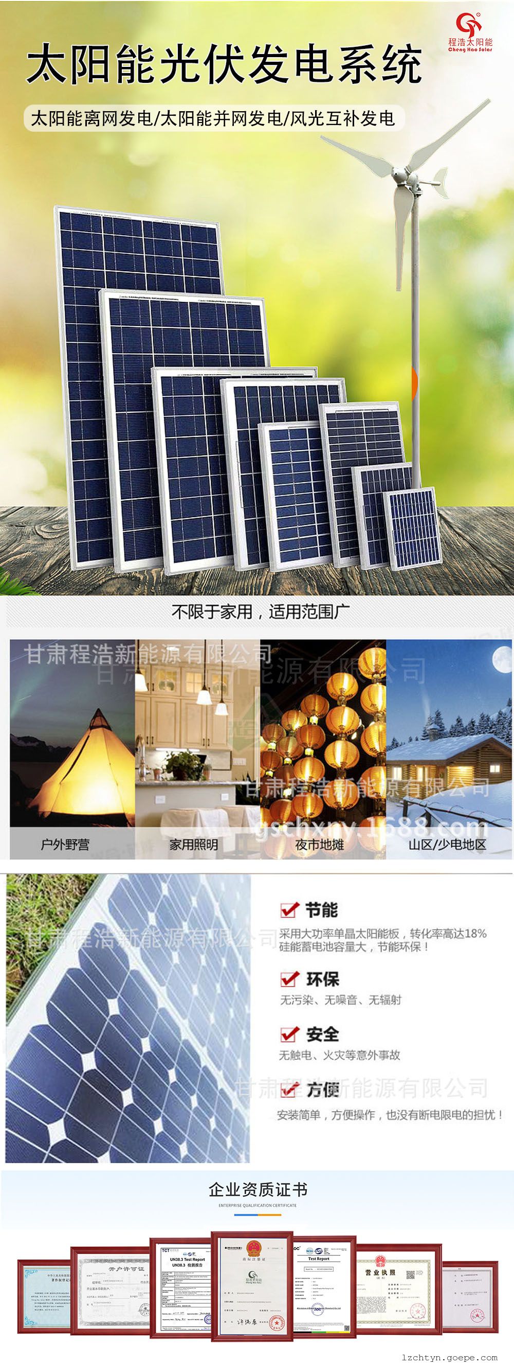 1、 户用太阳能电源:用于边远无电地区如荒漠、戈壁滩、高原、海岛、牧区、边防哨所等军民生活用电,如照明、电视、收录机、电饭锅、电表箱等;