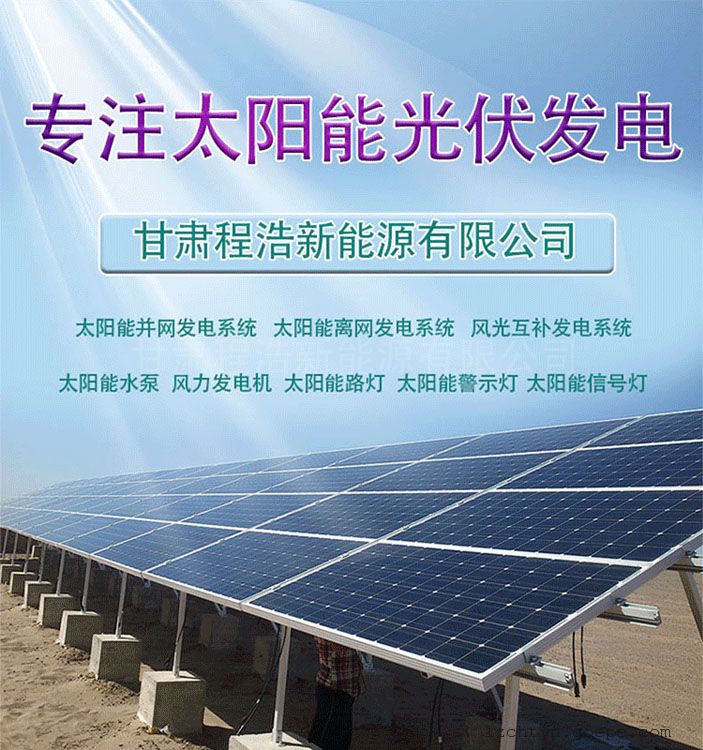 品牌:程浩太阳能 加工定制:是 型号:CH-GF-10KW 输出频率:50 Hz 光电板功率:10000 Wp 蓄电池容量:4000 AH 主机输出容量:10000 W 产品认证:CE 输出电压:220 V 1、 太阳能电池板:太阳能发电系统中的核心部分,也是太阳能发电系统中价值*高的部分。其作用是将太阳的辐射能力转换为电能,或送往蓄电池中存储起来,或推动负载工作。